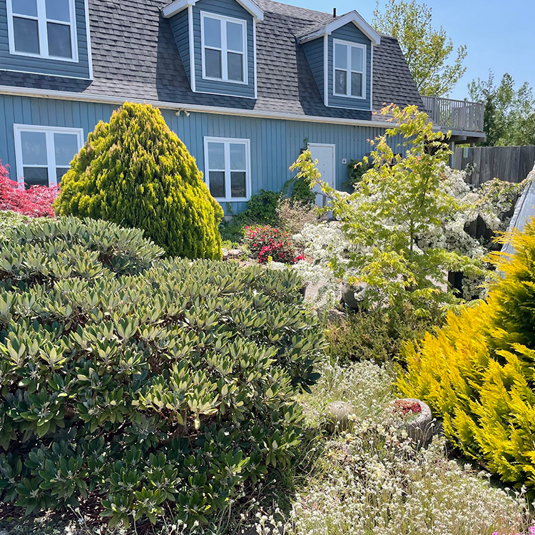 We specialize in alpines, heaths/heathers, dwarf conifers, rhododendrons and other shrubs, grasses and a vast assortment of perennials.